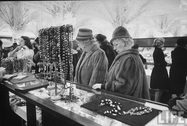 I love the last photo. There's a girl in a black coat on the right hand side of the photo that fascinates me, the beads all over that counter make me drool, and I wish I could wear fur jackets shopping! (it's quite frowned upon I've noticed).
